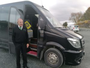 14 telepensjonister tok plass kl. 09 00 i minibussen med sjåfør Kjell Breding fra Orklareiser og Sende buss.