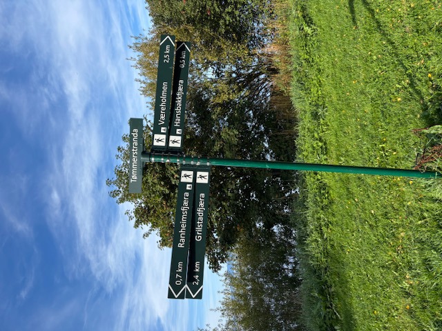 Videre gikk turen langs fjorden forbi Ranheim idrettshall og fotballbane, skole og barnehage. Et flott område, raust med grøntområder uten den fortetningen som vi ofte ser i nyere bygningsmasser. Det er satt ut benker og bord flere steder så vandrere kan sette seg ned og bare nyte den flotte utsikten utover fjorden.
